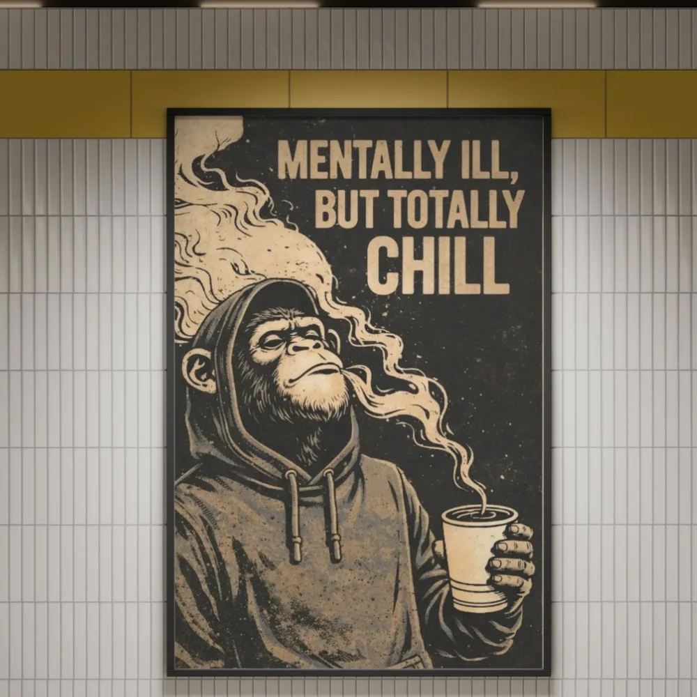 Mentally Ill But Totally Chill Monkey Art Poster