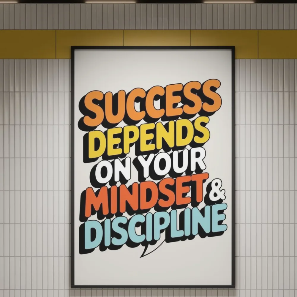 Elevate your space and your grind with this Retro-Inspired Motivational Poster. Featuring bold, 70s-style typography and a powerful message, this “Success Depends on Your Mindset & Discipline” print is the perfect daily reminder for entrepreneurs, students, and go-getters.